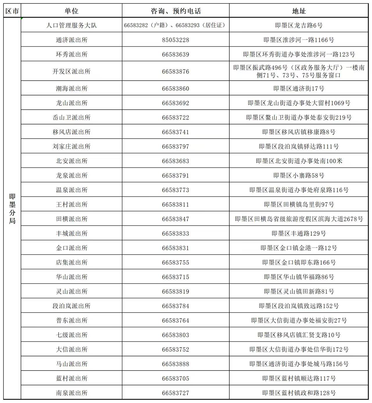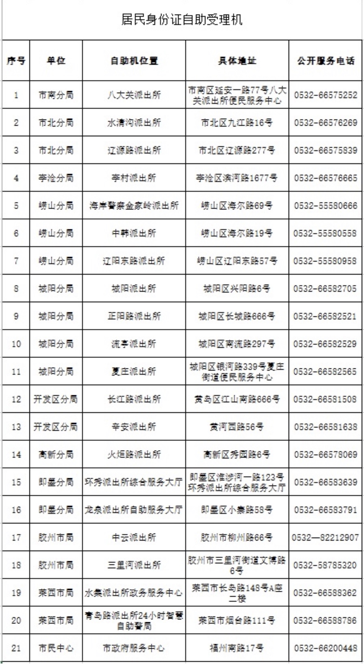 附有自助机的派出所地址及全市公安机关窗口服务电话(请工作日咨询)